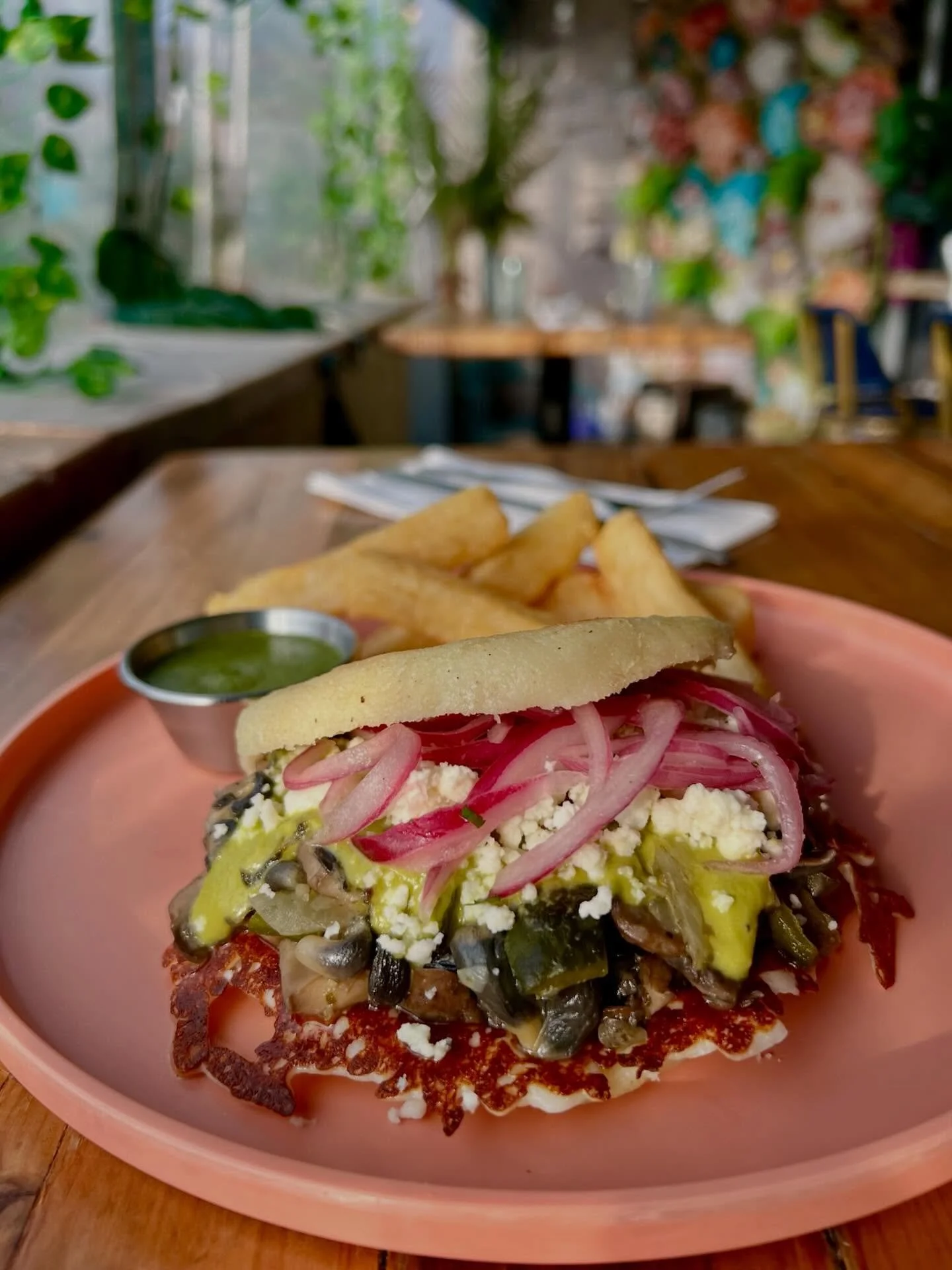 Arepas are cooked on a griddle until golden brown, then split open and stuffed with meats, veggies, cheeses, and homemade salsas. Arepas & most of our dishes are gluten-free.